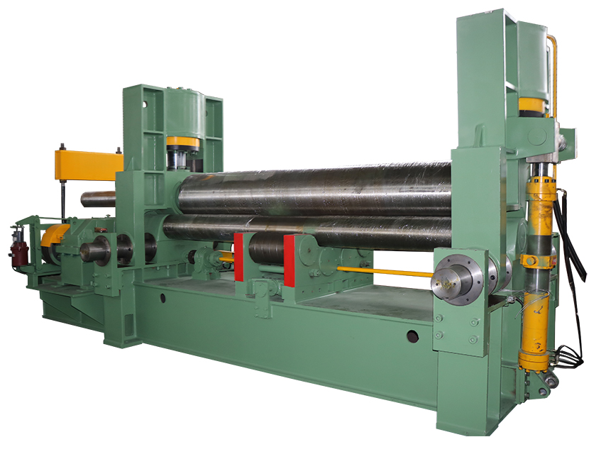 W11SNC萬能式三輥卷板機是一種雙夾板彎板機。 上輥為液壓驅(qū)動。 上輥可水平和垂直調(diào)節(jié),兩個下輥是固定的。 所有合金鋼輥均經(jīng)過感應淬火和熱處理。 經(jīng)過感應淬火處理后,所有的輥都將被研磨和拋光。